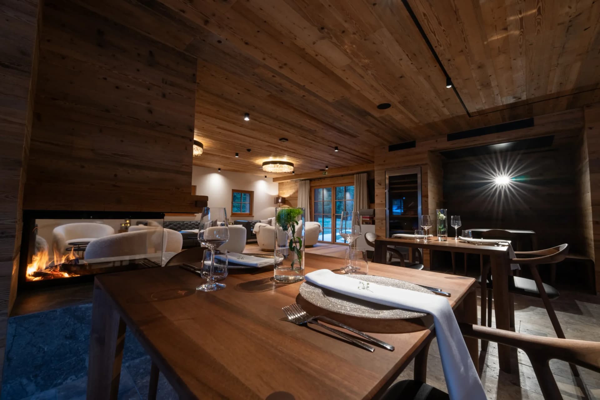 De elegant designede interiører præsenterer naturlige materialer, førsteklasses møbler og enestående opmærksomhed på detaljer, hvilket skaber en hyggelig, men alligevel sofistikeret atmosfære overalt. Omhyggeligt kuraterede rum inviterer gæsterne til at slappe af og genoprette forbindelsen efter dage brugt på at udforske de omkringliggende alpine landskaber.