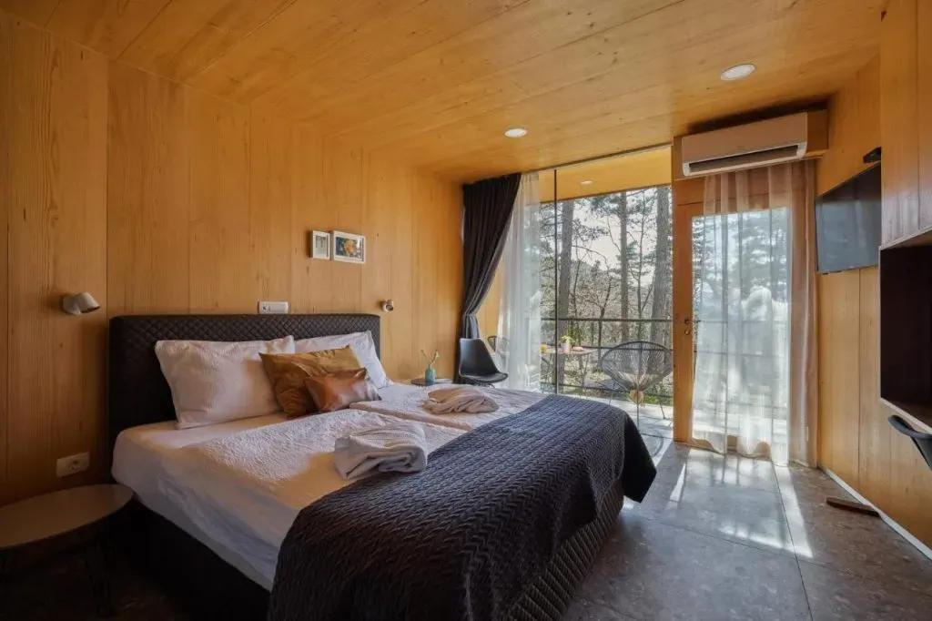 Elegantne navrhnuté glamping jednotky a lesné chaty kombinujú prírodné materiály s moderným komfortom, pričom ponúkajú pohodlné postele, štýlové kúpeľne, súkromné terasy a pôsobivé výhľady do lesa. Vybrané jednotky obsahujú súkromné vírivky, čím vytvárajú odľahlé prostredie pre úplnú relaxáciu.